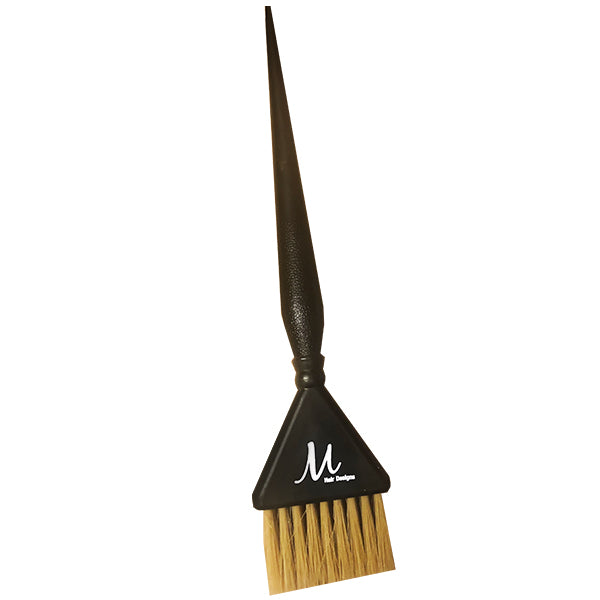 Apply Color effortlessly with the M Hair Designs Tint Brush. The M hair designs tint brush is made with a stylish classic black handle and the brown bristles compliment the handle to catch your clients attention. The handle has slight texture to assist on a firmer grip when applying color, bleach or toner.